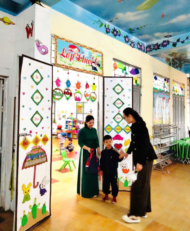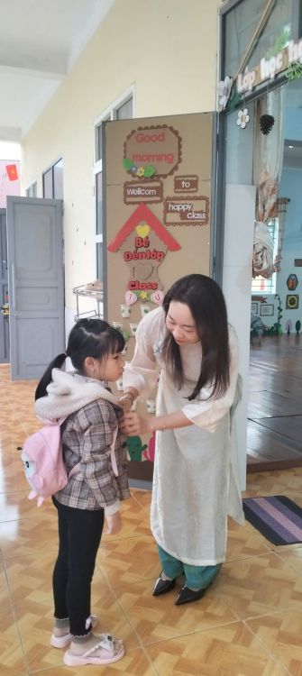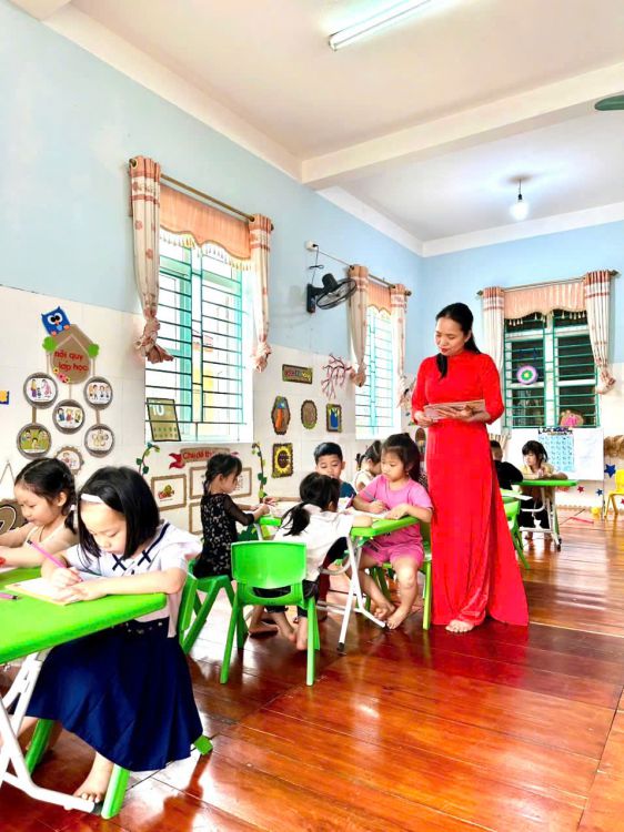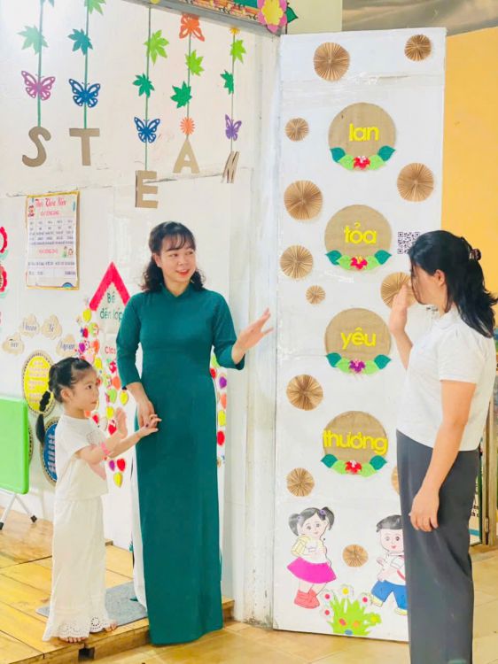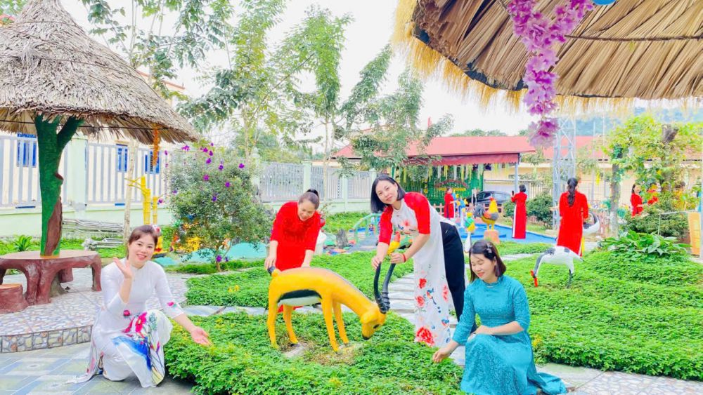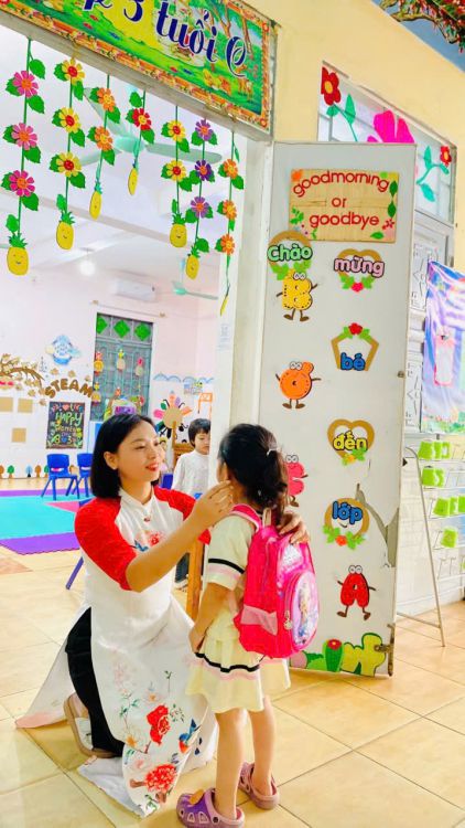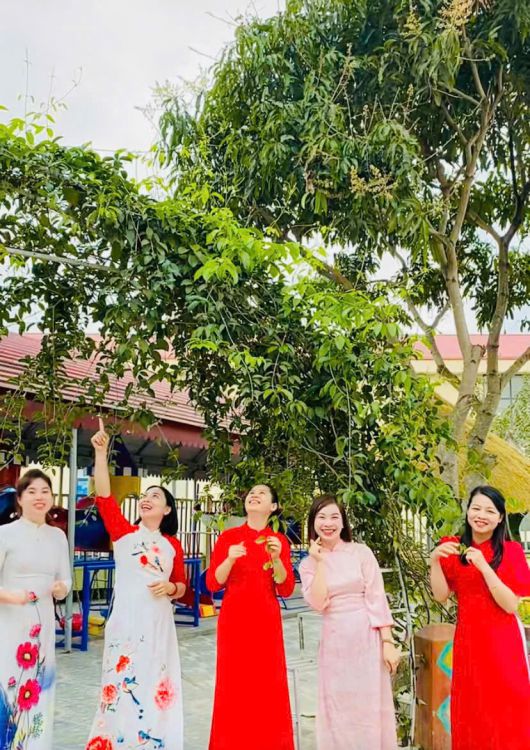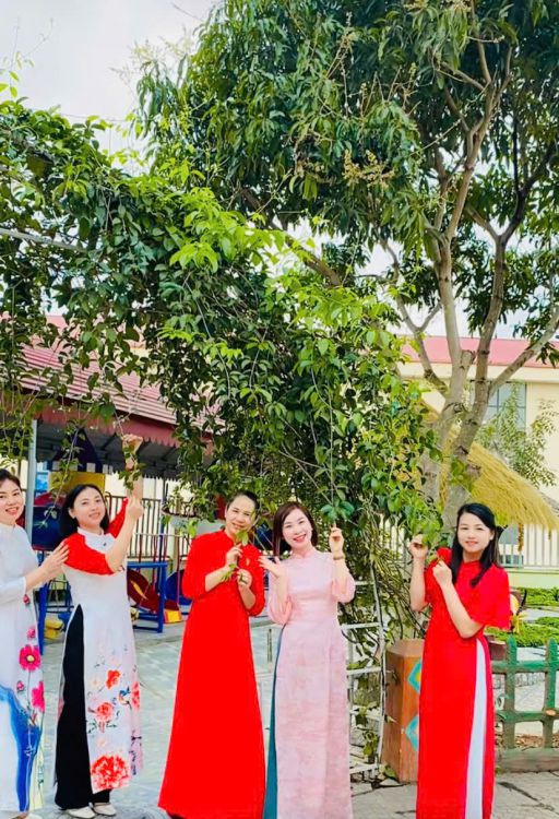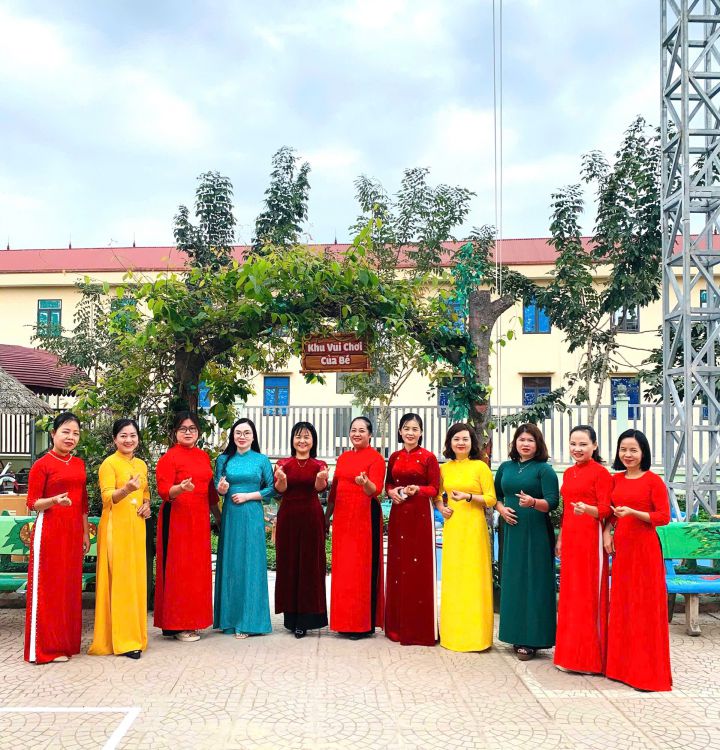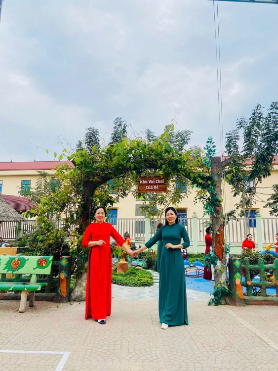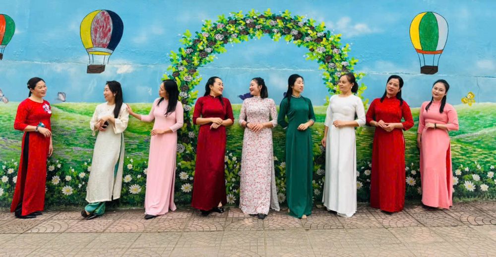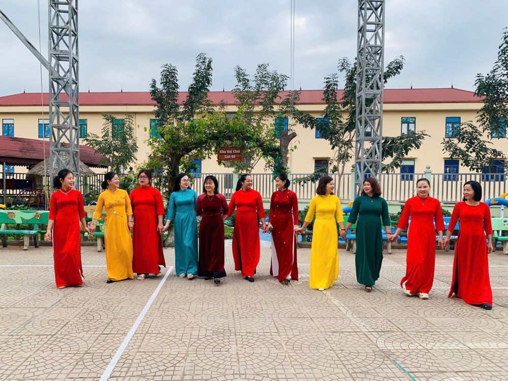Trong suốt tuần lễ, các cô giáo duyên dáng trong tà áo dài truyền thống khi đón trẻ mỗi buổi sáng, tham gia hoạt động chăm sóc - giáo dục, giảng dạy và thực hiện các công việc chuyên môn tại trường. Hình ảnh áo dài thướt tha nơi sân trường, trong lớp học hay tại văn phòng làm việc... đã tạo nên không khí trang trọng, ấm áp và tràn đầy ý nghĩa.