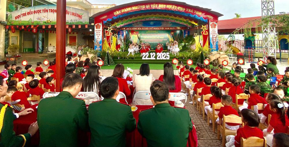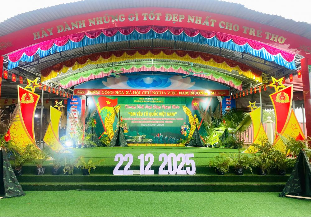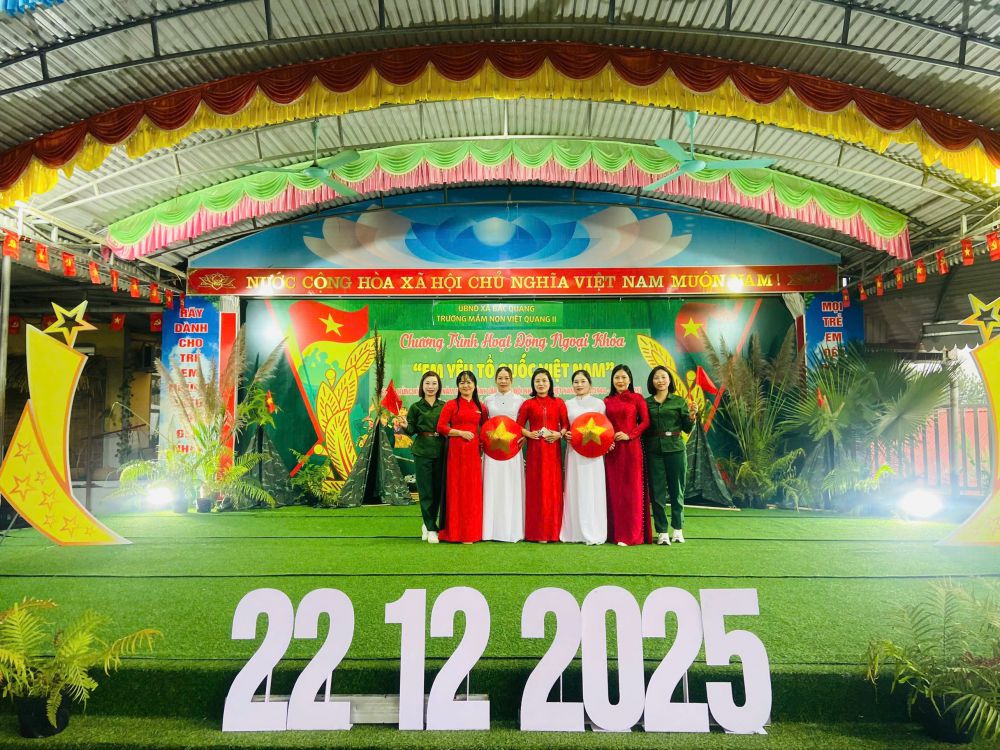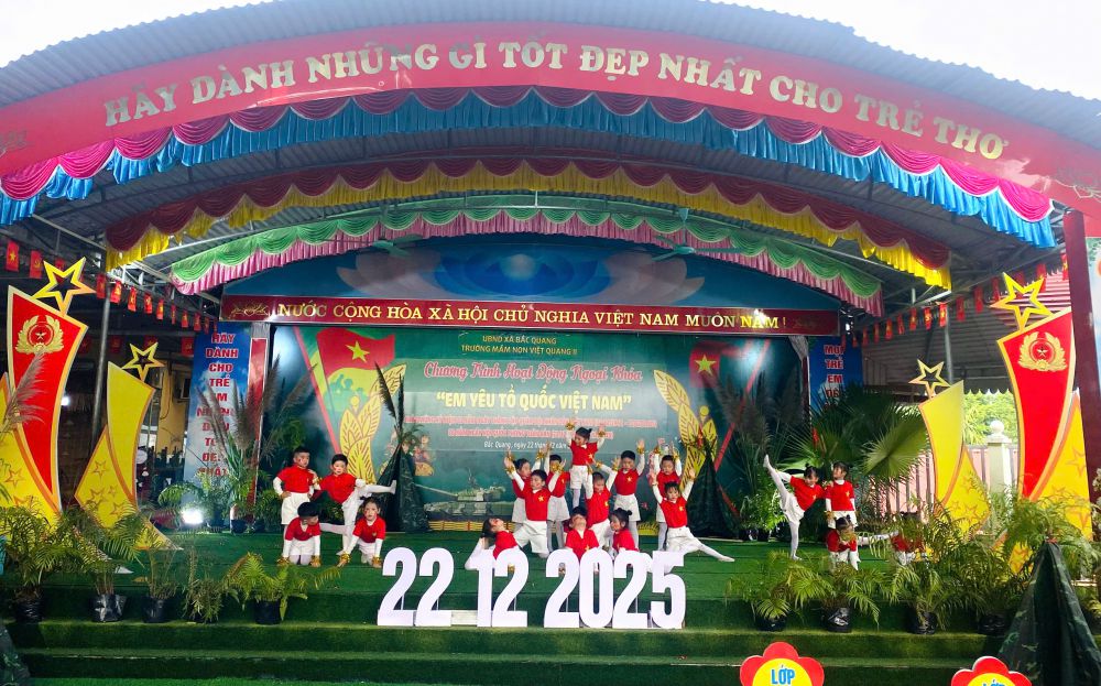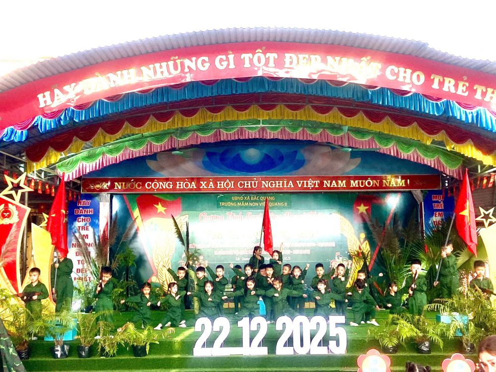Nhân dịp kỷ niệm 81 năm Ngày thành lập Quân đội Nhân dân Việt Nam (22/12/1944 – 22/12/2025), Trường Mầm non Việt Quang II, xã Bắc Quang đã long trọng tổ chức chương trình hoạt động trải nghiệm ngoại khóa với chủ đề “Em yêu Tổ quốc Việt Nam”, nhằm giáo dục truyền thống yêu nước và lòng biết ơn cho trẻ mầm non.