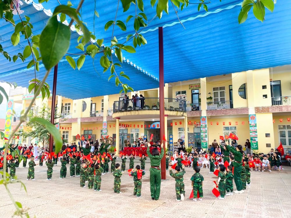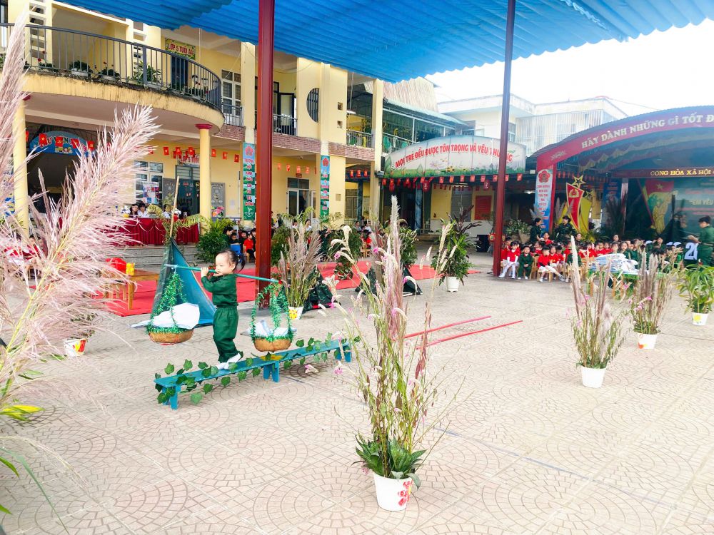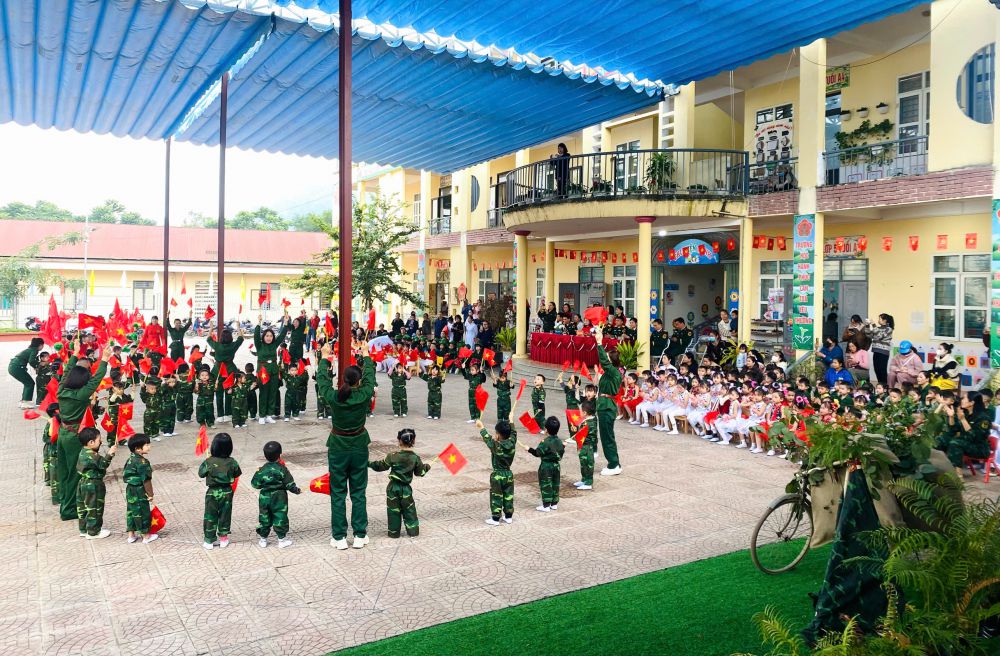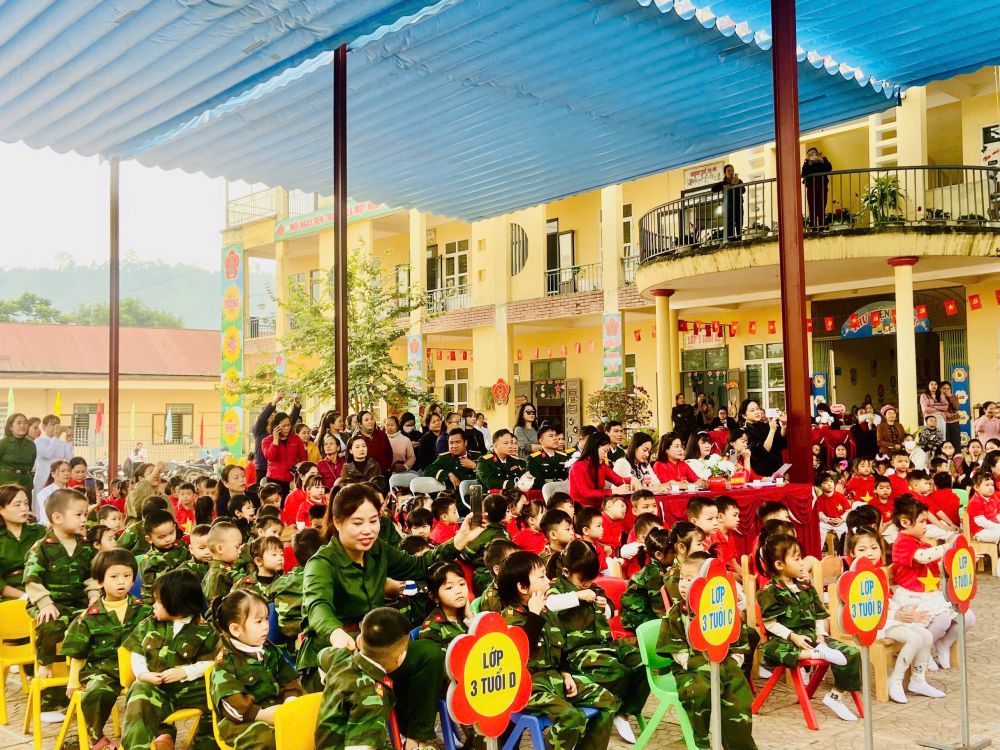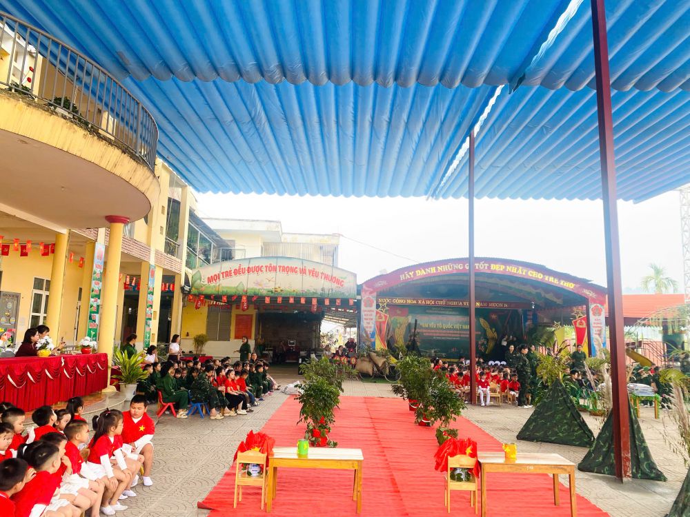 Chương trình có sự tham dự của đại diện đại biểu lãnh đạo chính quyền địa phương, đại biểu lãnh đạo Ban chỉ huy phòng thủ khu vực III Bắc Quang, đại biểu lãnh đạo Tiểu đoàn 17, sư đoàn 316, Ban đại diện phụ huynh nhà trường cùng tập thể Ban giám hiệu, cán bộ, giáo viên, nhân viên và các cháu học sinh nhà trường. Hoạt động được triển khai với các nội dung: Đồng diễn chào mừng của cô và trẻ; thi nhảy Êrobich khối mẫu giáo 5 tuổi; giao lưu các trò chơi “Chiến sĩ nhí” có thưởng.